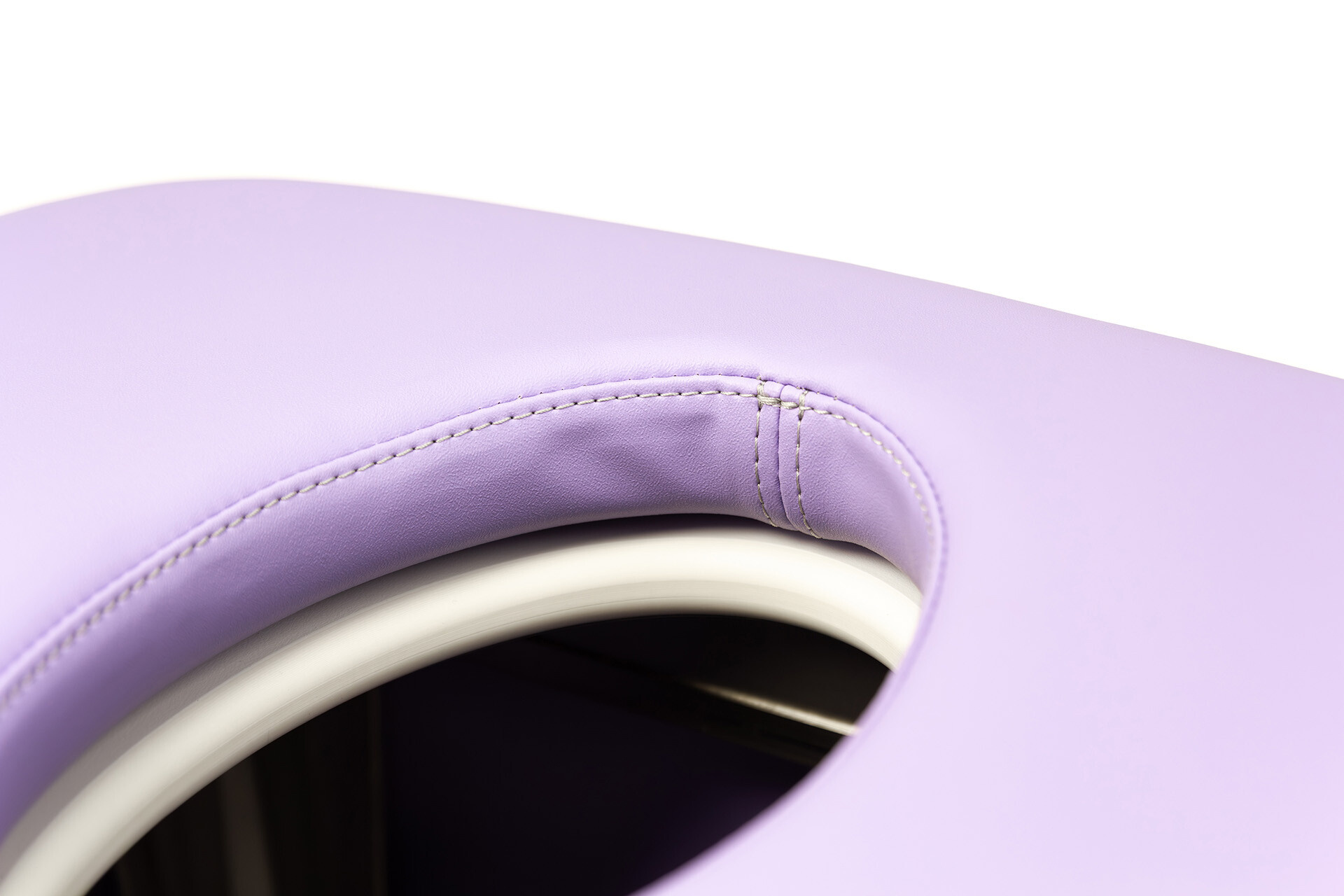 The Steamy® Softness Maia cover is made of Stamskin Zen leatherette by Serge Ferrari, which guarantees the highest quality. This high-end material has an Agivir™ antiviral surface with silver particles ensuring maximum comfort, safety and, thanks to the smooth grain on the surface, very easy cleaning. The supporting structure is a polyamide jersey without nanoparticles, which makes the material very resistant to abrasion or tearing. The padding is very precise and double-sided lined, so that it has identical properties on the outside and inside. All seams, including the inner folds, are bonded, which prevents the penetration of dirt in depth, significantly extending the service life and simplifying maintenance. Of course, it has been tested for cytotoxicity (non-irritation to the skin) according to ISO 10993-5 and -10; OECD TG439.